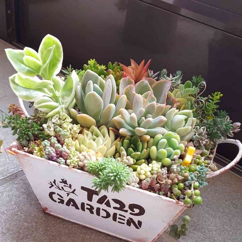 手前の真ん中のみどりんセダムは、斑入りパリダムです。