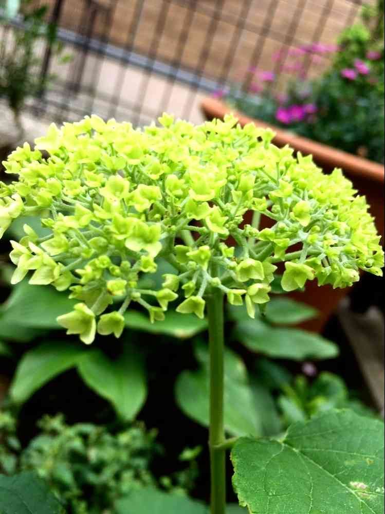 少しずつお花が開いてきました。咲き進むとライムグリーンから白にかわる姿をみるのが楽しみです❇️