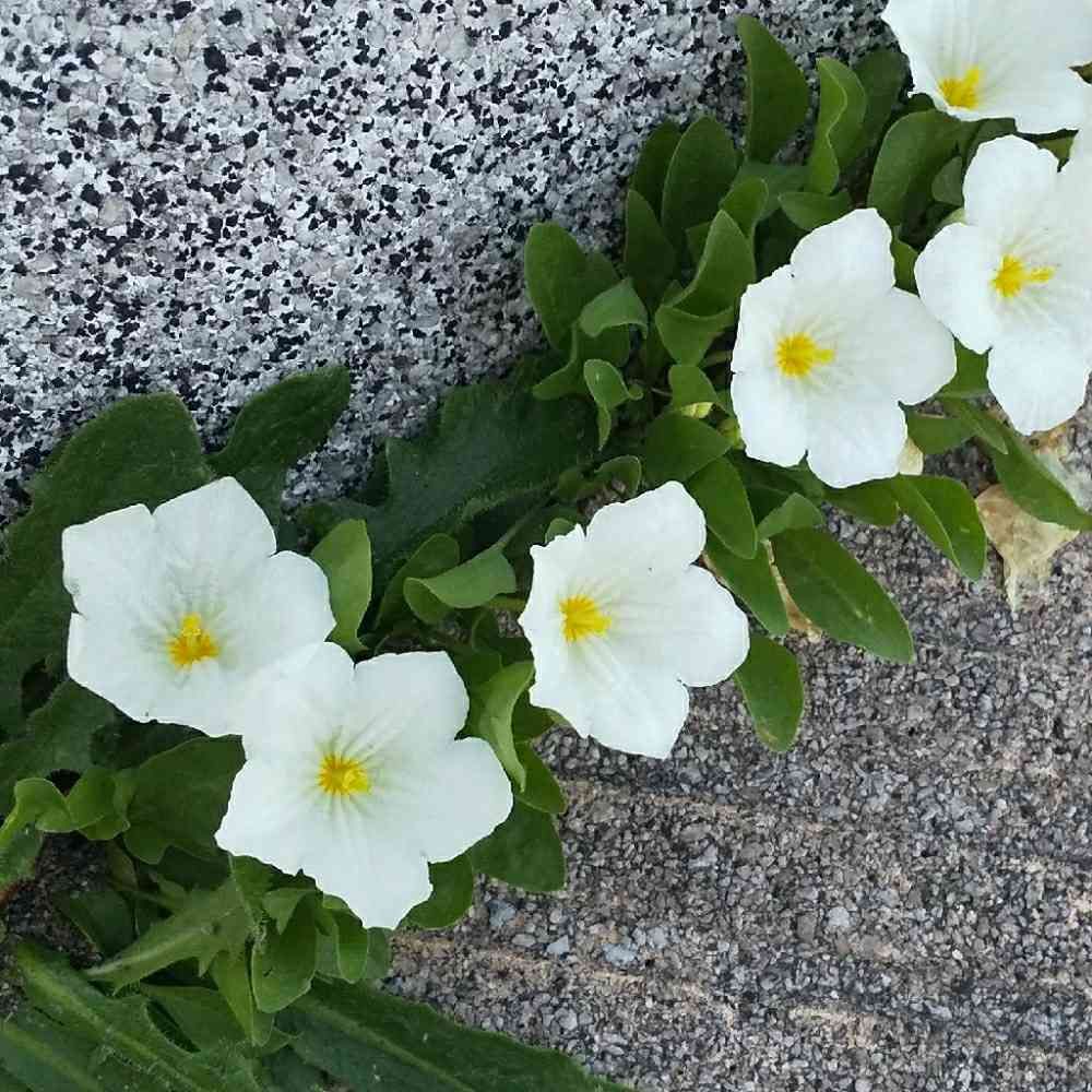 午後4時頃、田舎の駅前の石のベンチの下に咲いてました。なんの花か気になってます。教えて下さい。
