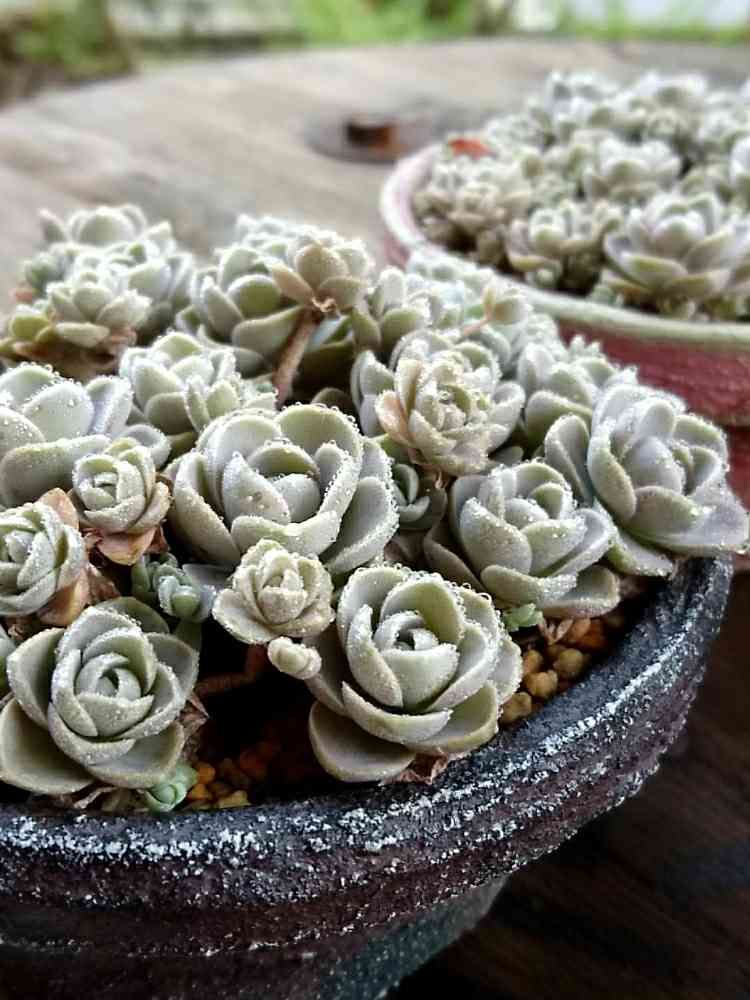 朝露に濡れる子持ち蓮華さんが可愛い( 。• •。 ) ~♡。