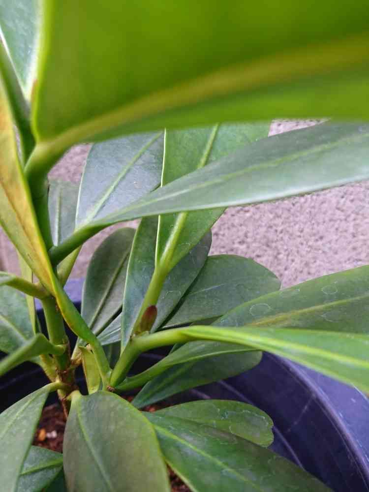 3年前沖縄の道で拾ったフクギが我が家で発芽しました。今年の新芽発見!
