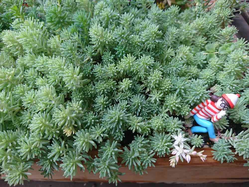 真緑のセダムから真っ白い凛としたお花が咲きましたとさ。
