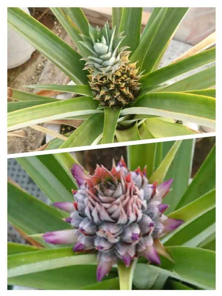 下は、最近花が上がってきたと思ったらもう花が咲いてた別の株です🍍。上の株の花のpic無かったので、撮れて良かったw
