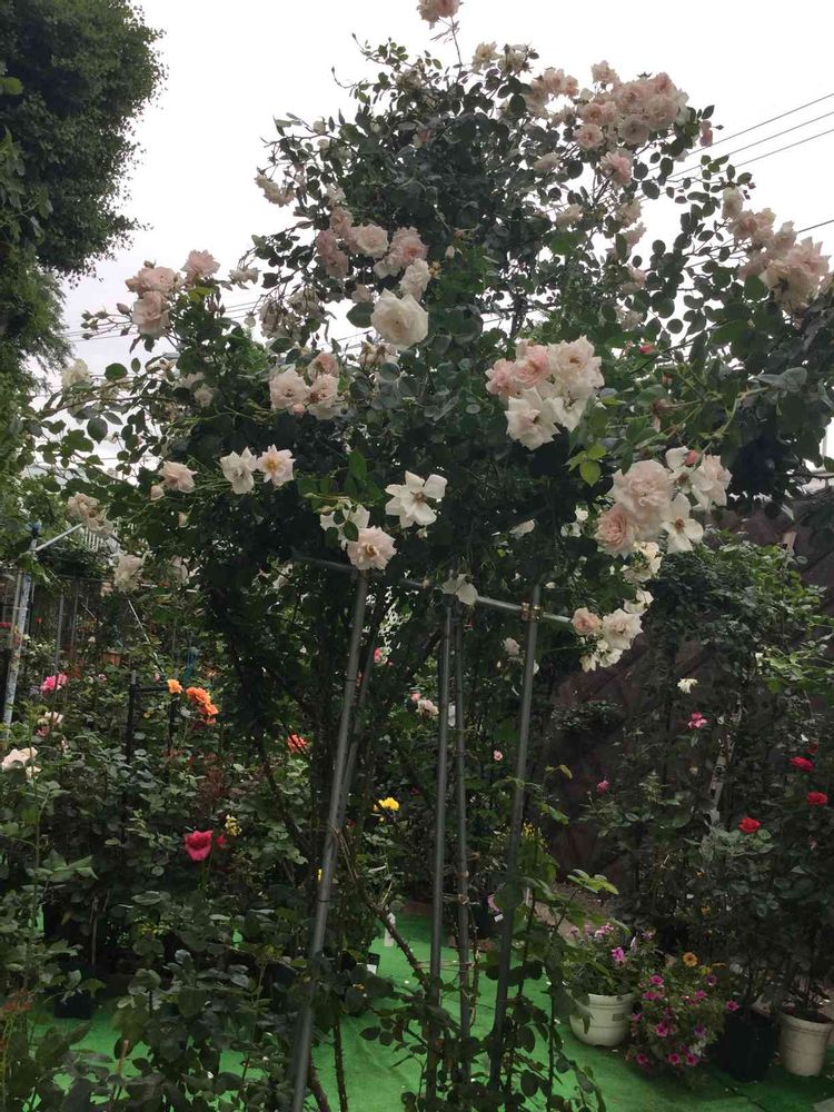ニュー・ドーンは、満開になるとすぐに花を切らないと、そこらじゅうが花びらで大変なことになってしまいます。他のバラは、育てて三年目ですが、ニュー・ドーンだけは、33年目を迎えました。
