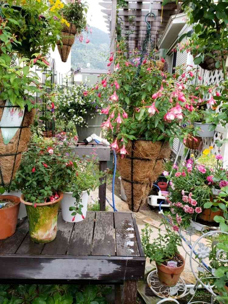 この中には、5、6種類のフクシアのバレリーナが咲いてくれています。