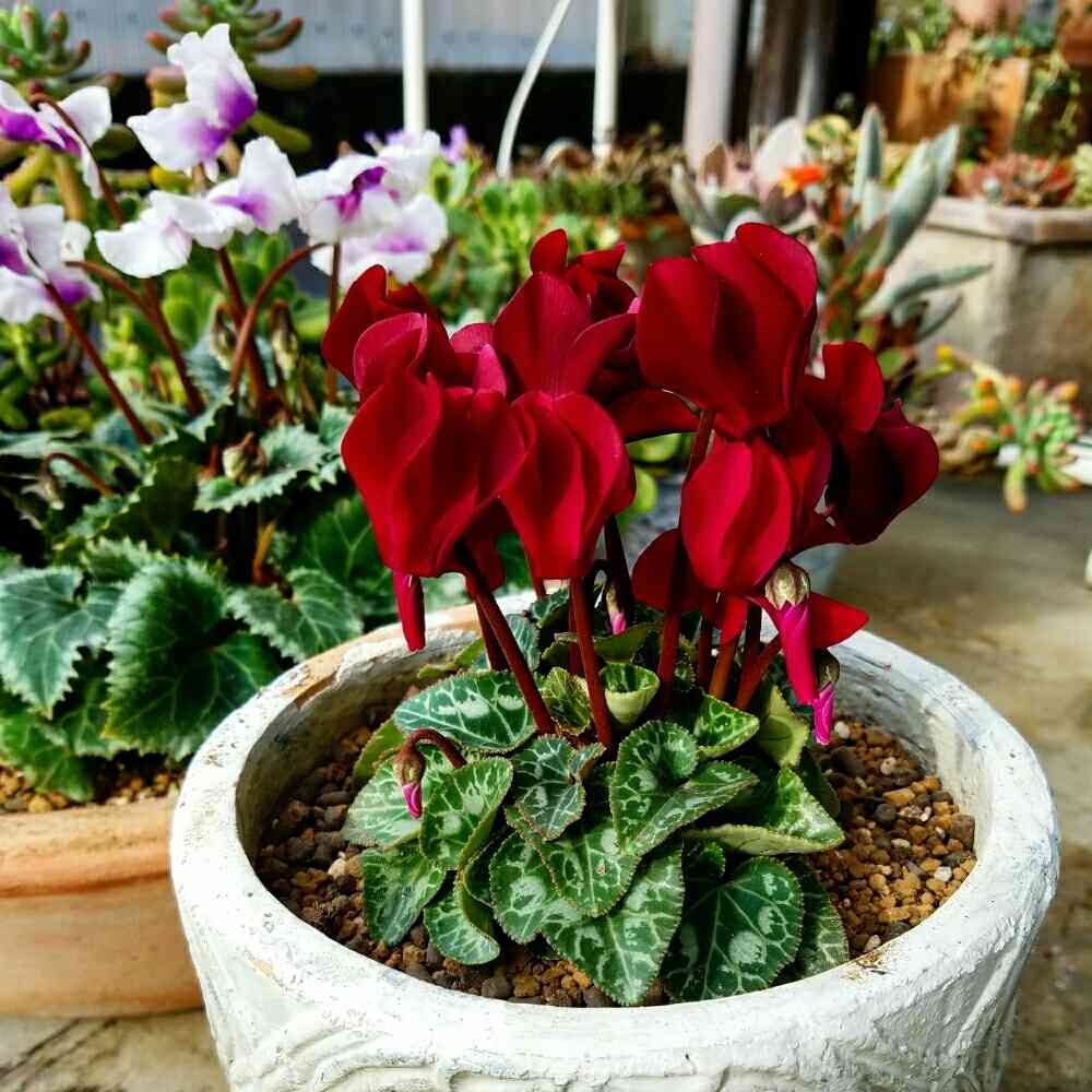 ダークレッドのガーデンシクラメン植え替えしました✨
