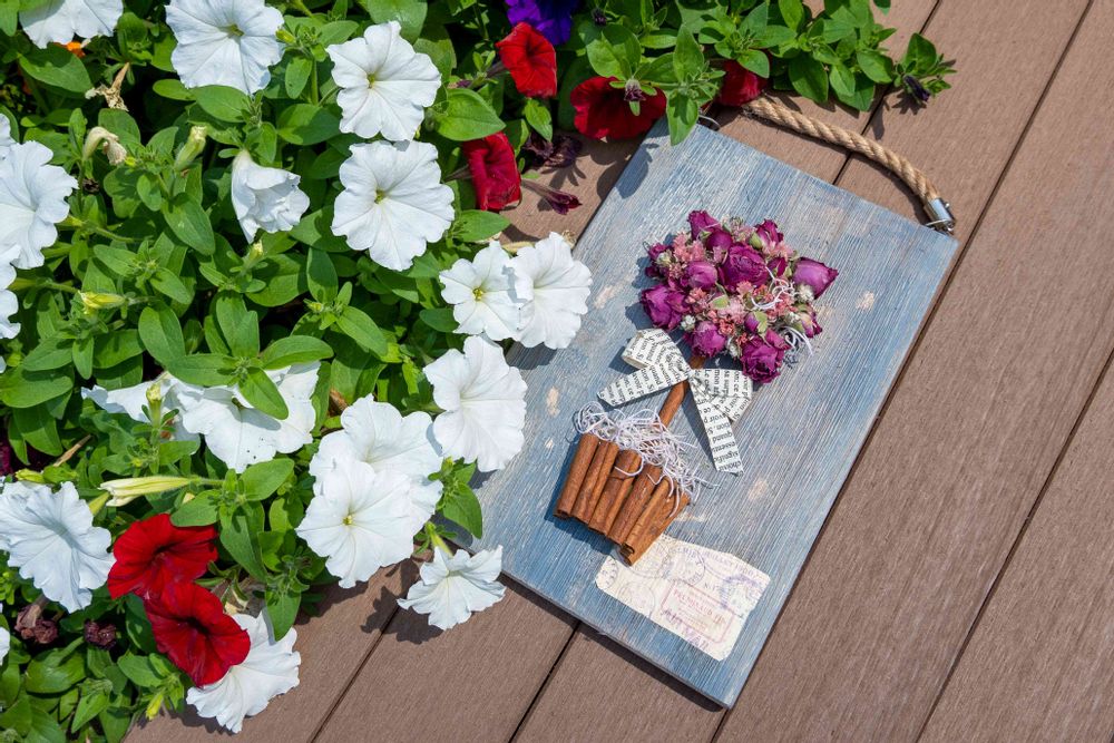 ウッドボードにドライフラワーをアレンジしてみましょう。