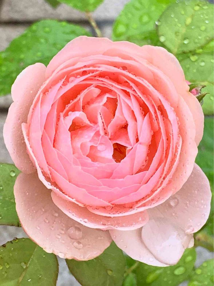ヘリテージの挿し木ちゃん、開いてきましたが、朝から雨。酷くなりそうなのですぐ軒下に避難させました。