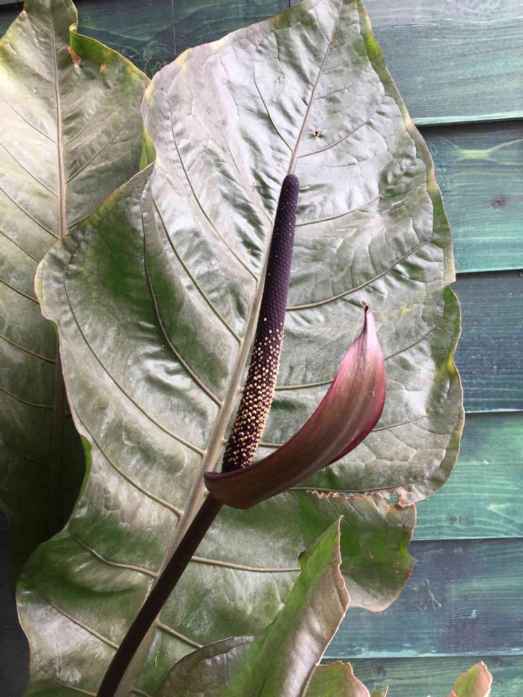 さん、ありがとうございます。スパティフィラムとアンスリウムとカラー、こんにゃくの花…全部を混ぜたような感じなのですが。シックな色味が一目で気に入りました❤️