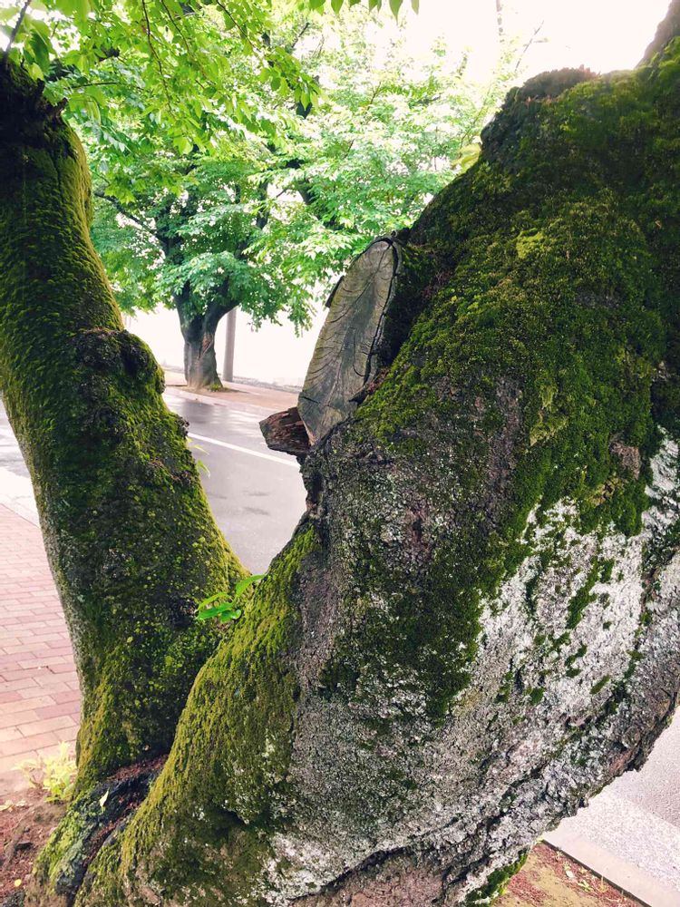 何の木か知りませんが、苔が雨に濡れて綺麗でした😃
