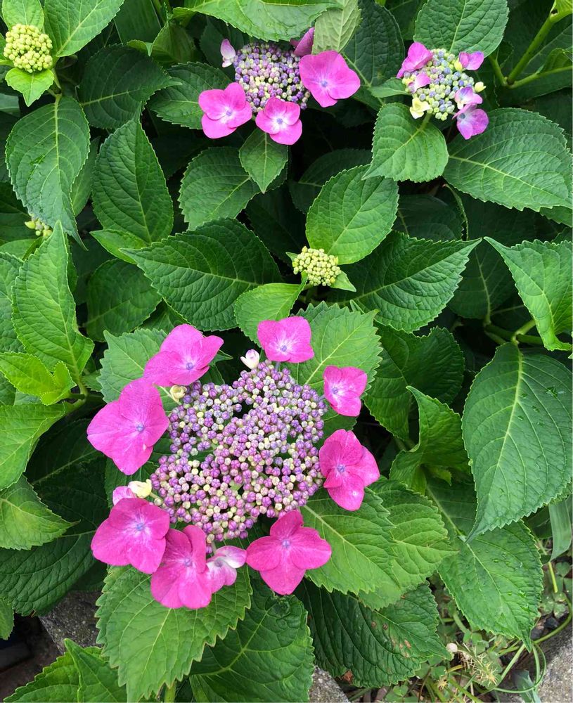 この額紫陽花は20年前に会社の玄関先に植えた時は、確か青だった筈。