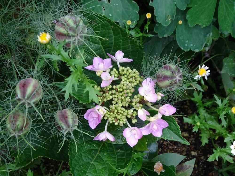 アジサイ城ヶ崎とノースポールとニゲラ。
