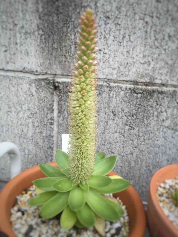 さん この多肉は花が咲くと親株は枯れてしまうんですよ。そのかわり子株を沢山吹いてくれます。写真ではみえませんが、親株の下に沢山の子供達がいます(*^^*)