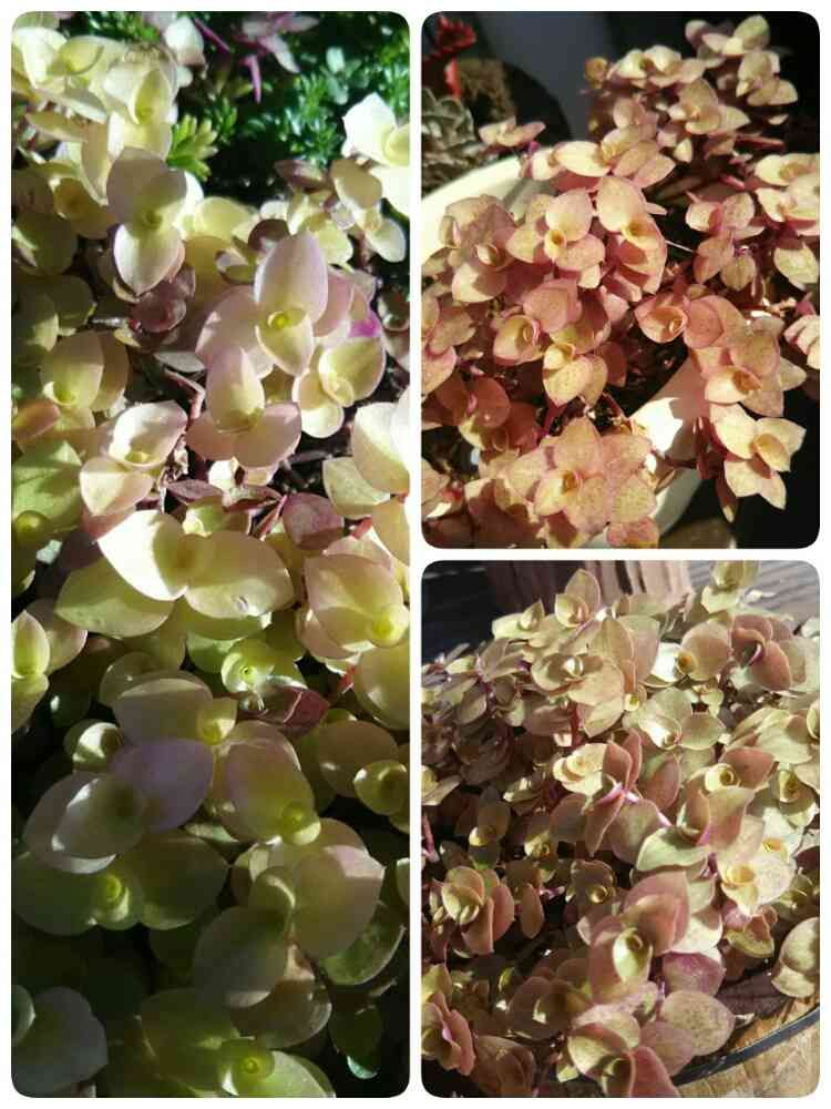 光沢のある黄緑で葉の裏だけ色づいてるのに、チョンパして鉢に挿しておいた右の2つは微妙に色が違う👀