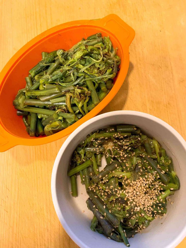 会社の友達が蓼科でワラビを取ってきてくれたから、灰でアク抜きしてゴマ和えして食べてます。