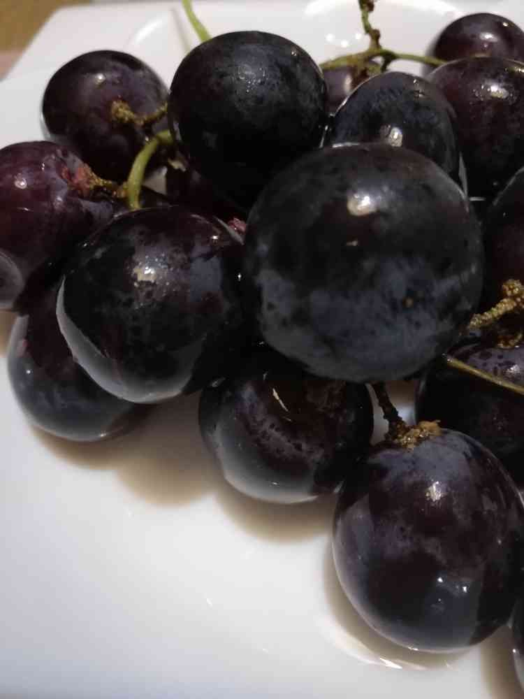 今日のデザートはぶどう、黒真珠のような、甘くて、プチプチの食感でした。