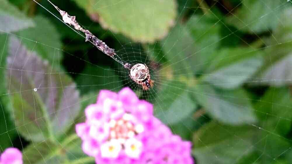 蜘蛛の巣に張り付いてる紫のは糞?ご飯?1箇所にまとまってるから、整理整頓しとんかなー?断捨離してもすぐ物が増えてゆく私は蜘蛛になったら下に物落とすタイプかもしれん😆