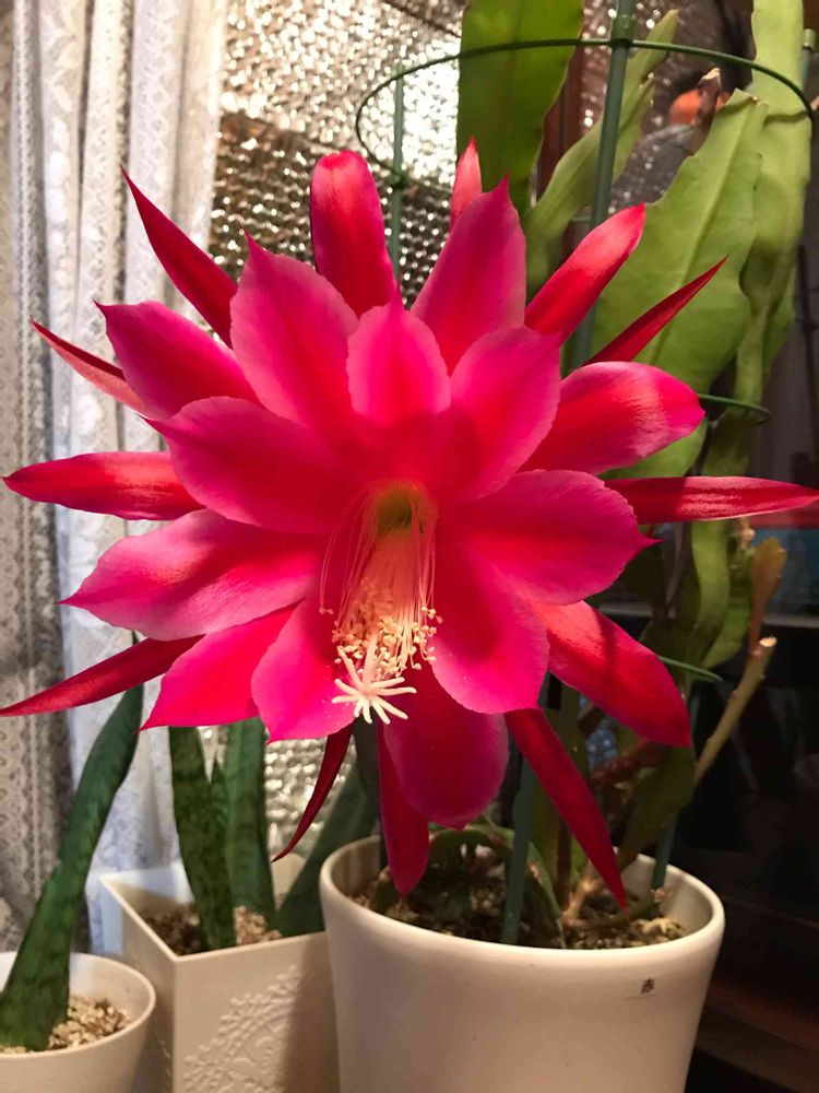 バルコニー/ベランダ,クジャクサボテン赤,多肉植物の投稿画像