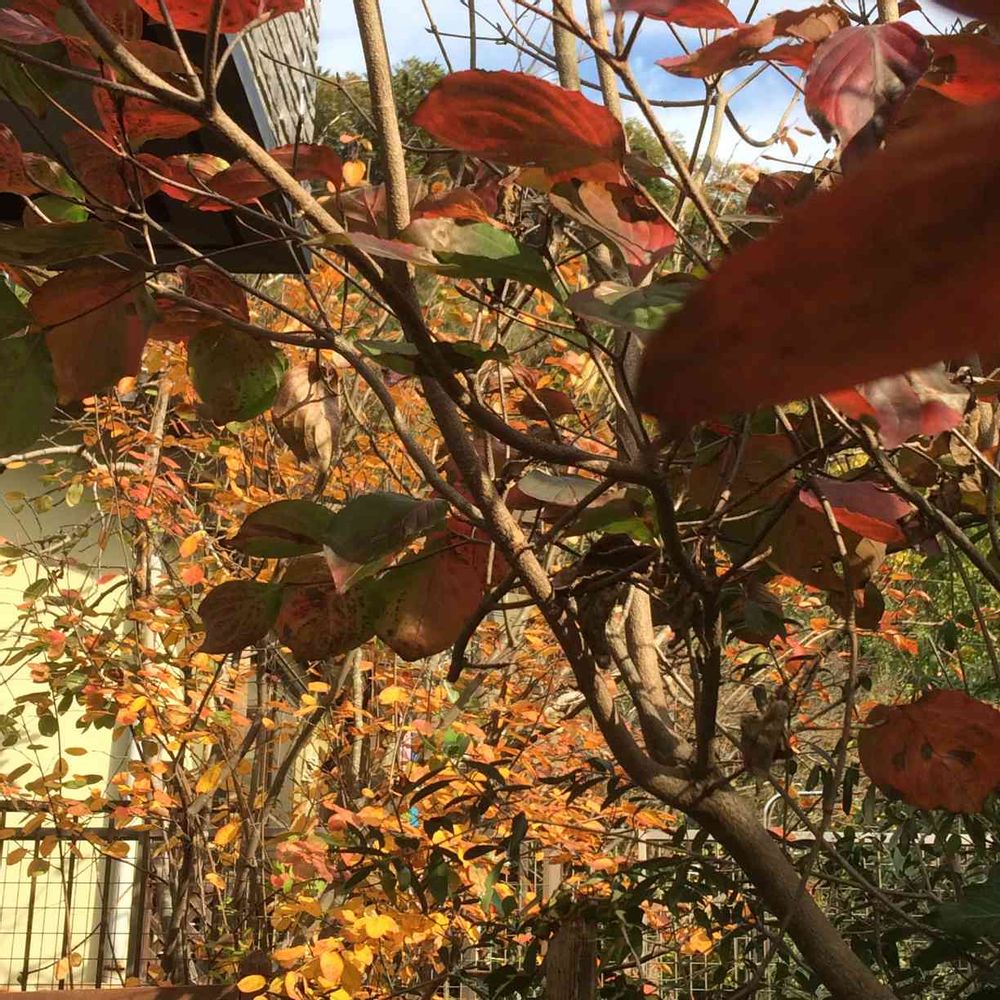 うちのヤマボウシもすごく綺麗な色になりました🍂きのう剪定お願いして葉っぱは少なくなっちゃったけど😅