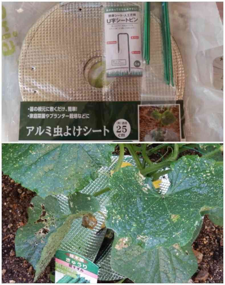 朝からキュウリにキラキラシートと木酢液+ダインを散布しました😊