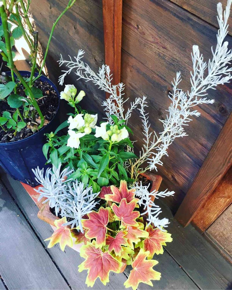 エレモフィラニベア 、もみじ葉ゼラニウム 金魚草 、ヘリクリサムコルマ