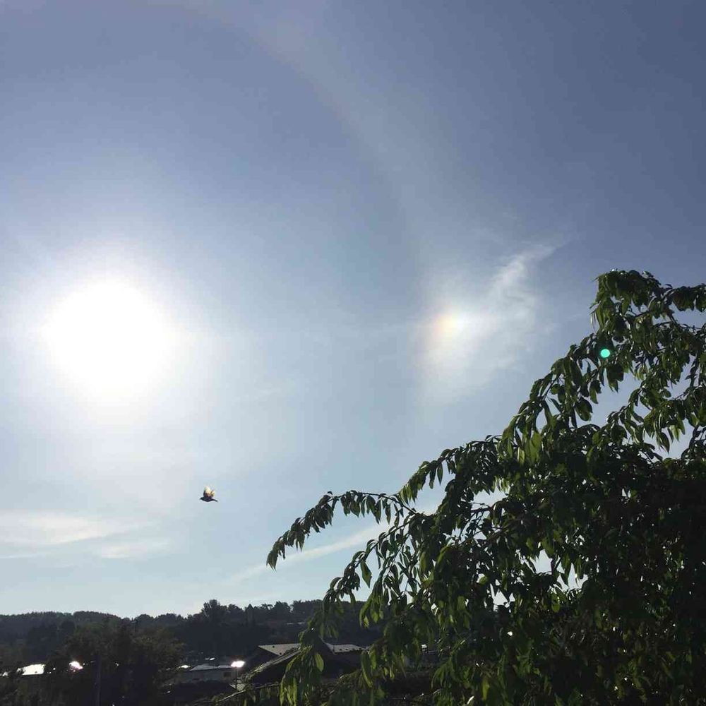 今朝は 太陽の周りに ぼんやりと光の輪が…