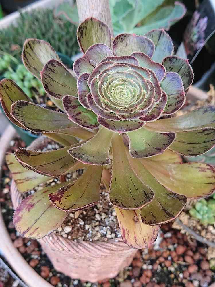 アエオニウムもつい最近、黒法師とカナリエンスをお迎えしたばかりですが、まだら黒法師、とっても綺麗ですね😍