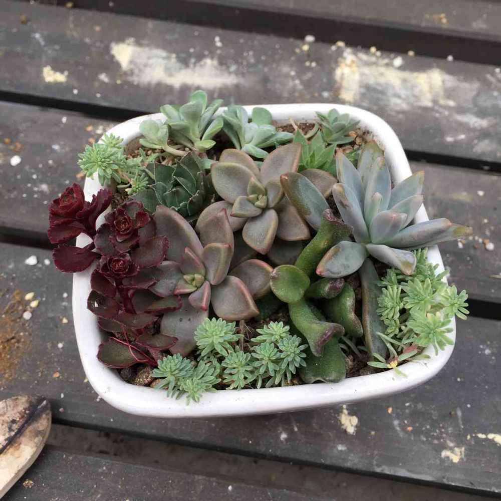 お友達にあげる用に寄せ植え。手持ちの多肉の種類が増えて来たので、だいぶん色味にまとまりが出てきた。