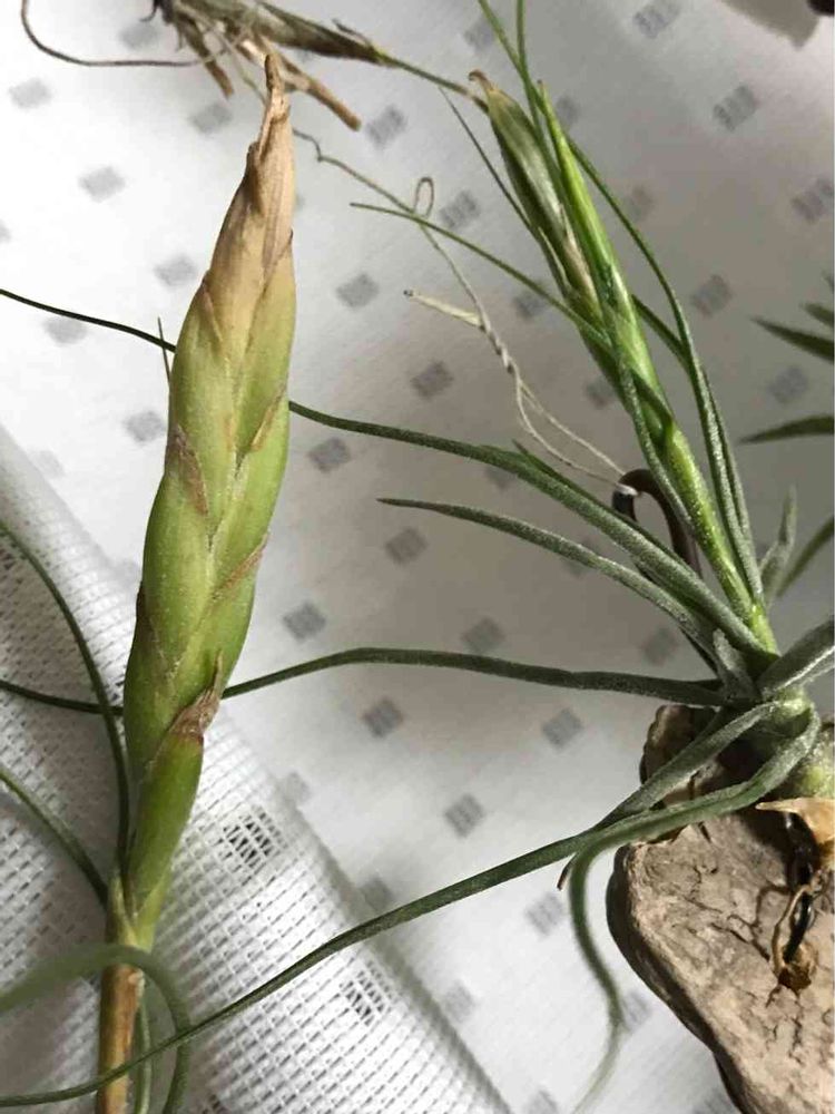 他の植物なら花が咲いて受粉したら実が出来たりしますけど、チランジアはシードポットっていう種が入った部分ができます!これが実なのかな??