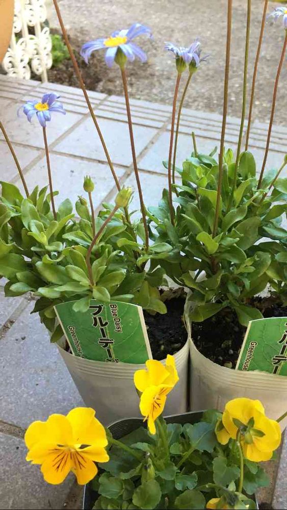 ブルーデージー買ったらサービスで黄色のビオラも一緒に届いた❣️*\(^o^)/*💖💖💖