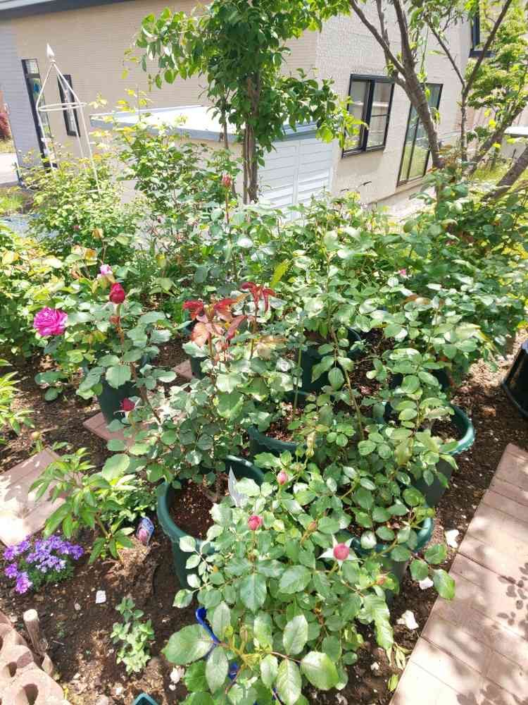 広いスペースを確保されて綺麗に整備された花壇ですね😊✨ バラさん🌹も安心して成長できますね💕