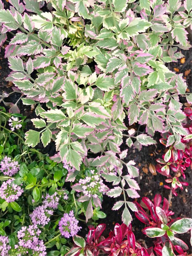 斑入りミツバ、大好きで以前あちこちに植えていたのですが、地下茎で増えるので、増えすぎてやめてしまいました笑