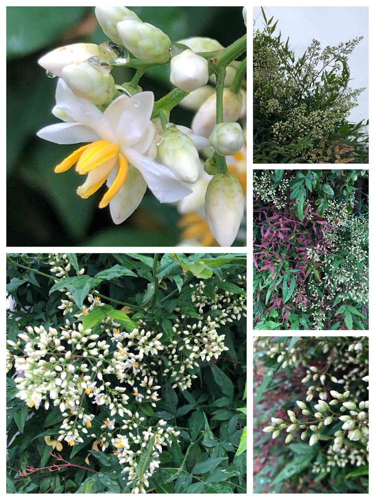 朝,早速南天のところに行ってチェックしました。我が家の南天も見事に白い花を咲かせていました。💮🌸🌺