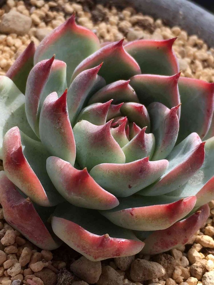 寒くなり赤みが少しずつ増して来た感じです🤗🍀ベランダの多肉棚の最上階で頑張ってます❤️