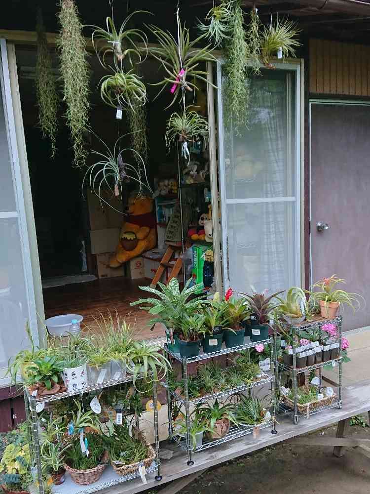 こんにちは🙇今日二回目投稿ですすみません🙇、今日は曇り空☁️だったのでこの時間にチランジアたちに水やりして自然乾燥してもう少ししたら室内に取り込む予定です、水やり後のチラパトは至福の時間です☺️。(奥に見える人形は自分のではありません兄貴の娘の物です)