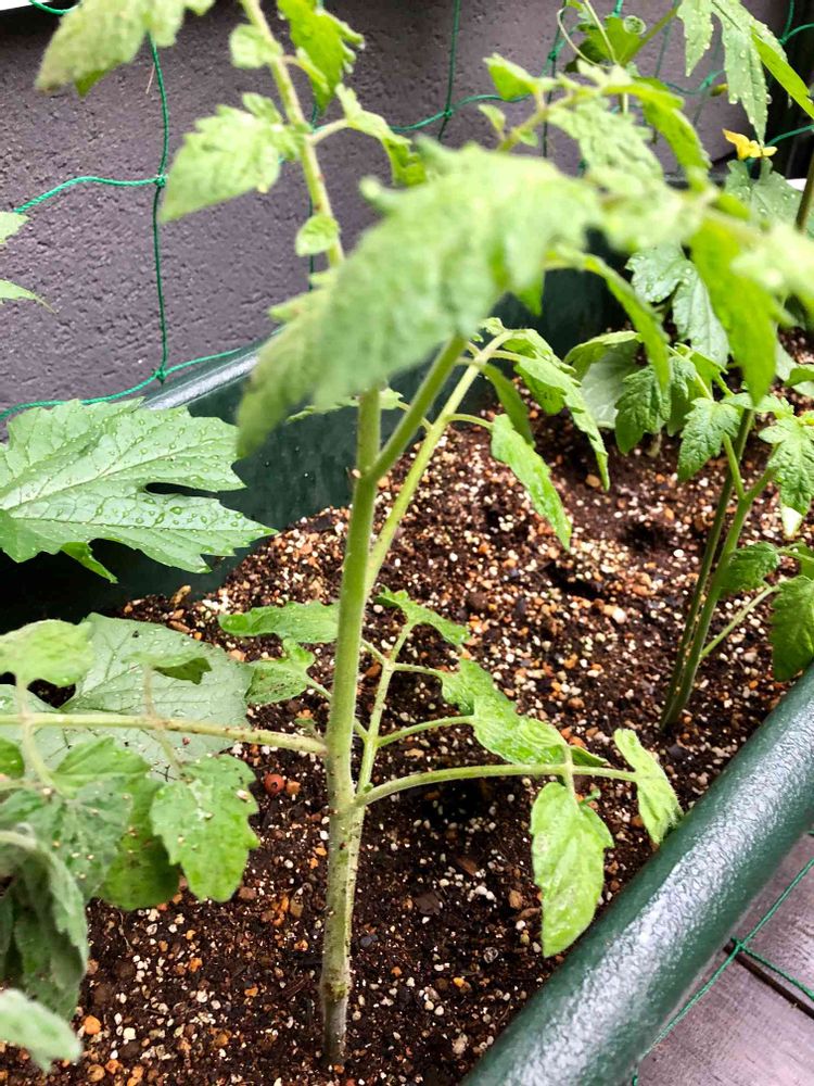 アースガーデンアンバサダーのイベントでいただいた、ミニトマトぷるるんの脇芽を挿してみたら、3本中2本が無事に発芽しましたー😆