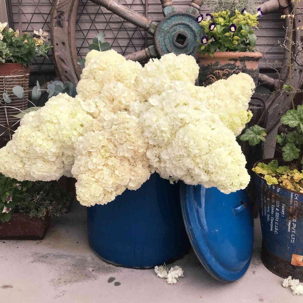 どうせ来年咲かせられないなら、贅沢に切って飾ってしまおうということで琺瑯にドーン💥