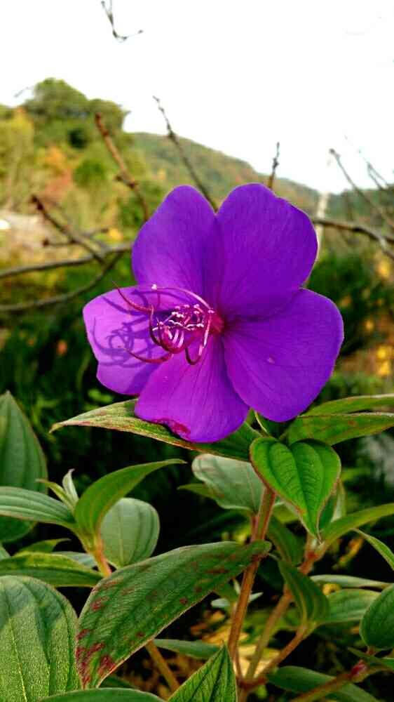 冬色に変わりつつある庭で、凛と立つ野牡丹。