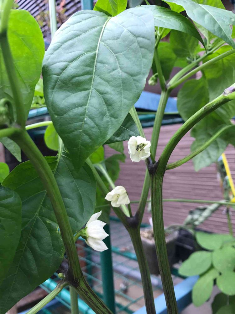 プランターのミニパプリカに花が咲きました。パプリカはここからが長いですが…。