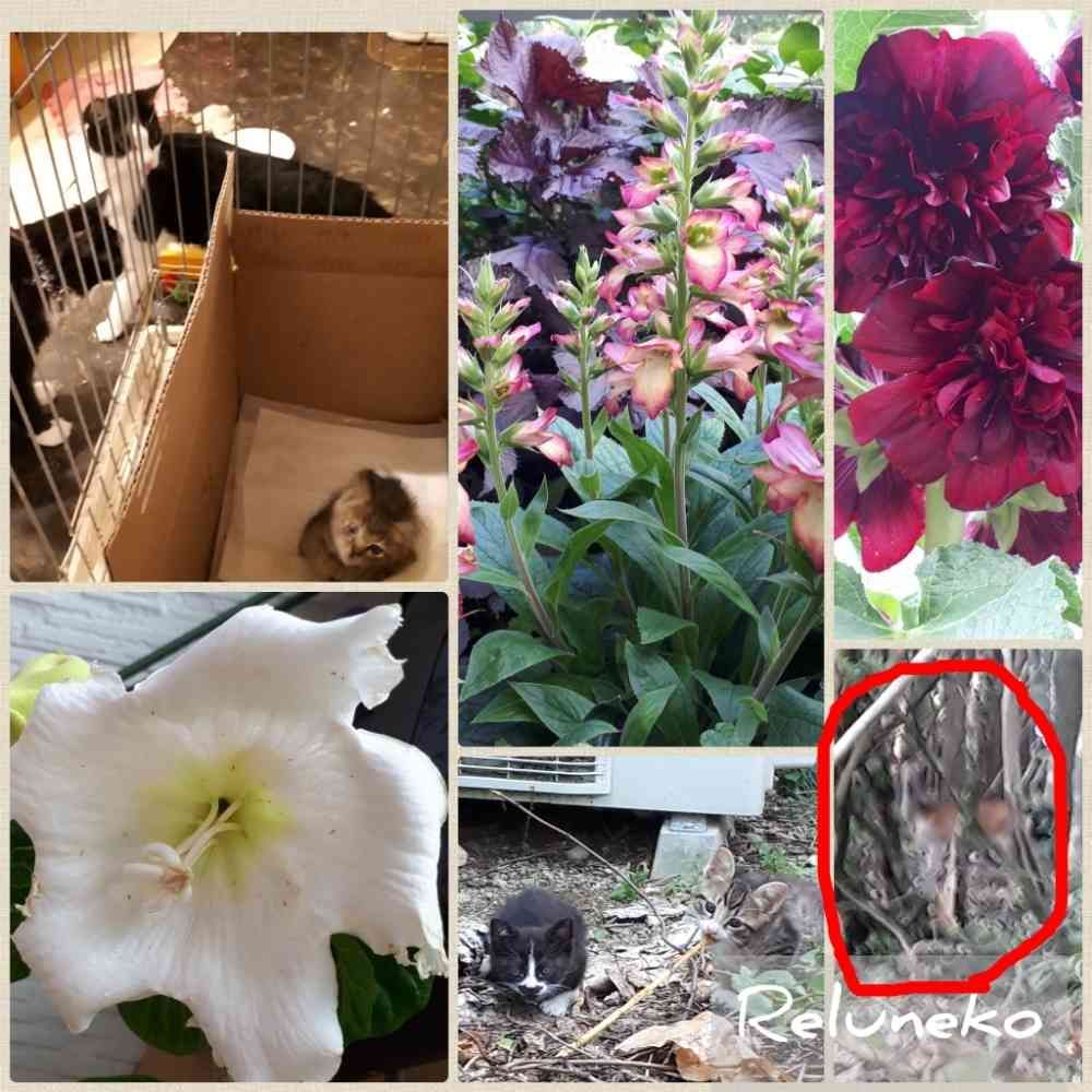 真ん中下は、外に母猫といる二匹の子猫。保護したののちゃんより大きいです。