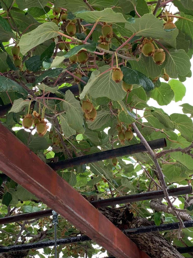 素晴らしいキウイ棚🥝うちのは、曲がっているよ😅