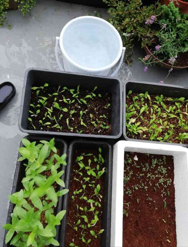 こんな場所無くなるほどたくさん育つと思わなかった!嬉しい悩み。雨続きも少し寒いのもこの時期移植した苗には良いかもしれない