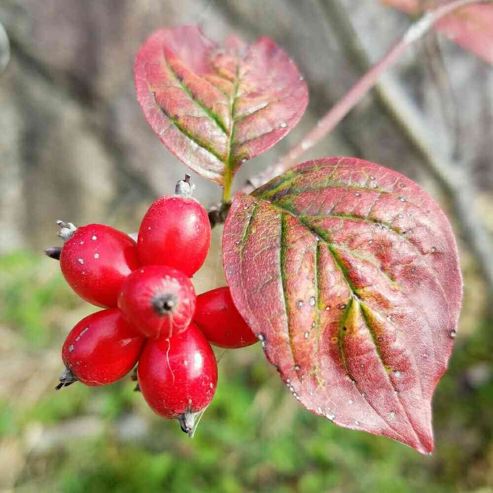 お散歩道で見つけたよハナミズキの紅葉をよく見ると可愛い実があった(ू•᎑•ू❁)❤✨