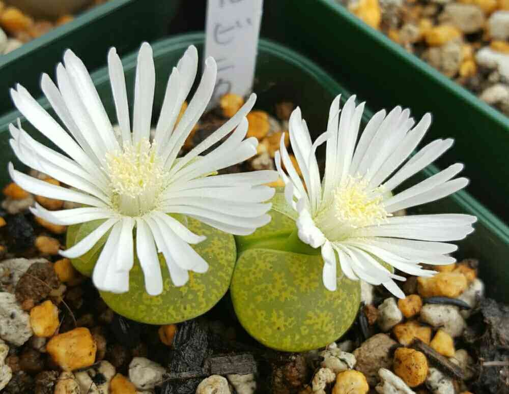真っ白のお花キレイ✨先日初めて一鉢リトープス買ったんですが、失敗するの怖くて未だそのまんま。水もあげれない~💦