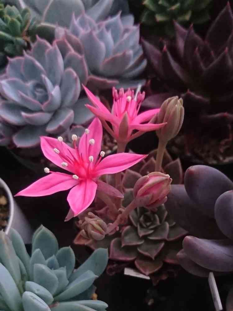 多肉の花って、うつむき加減て咲くのが多いけど、そんなに主張して咲く子も居るのね〜😳