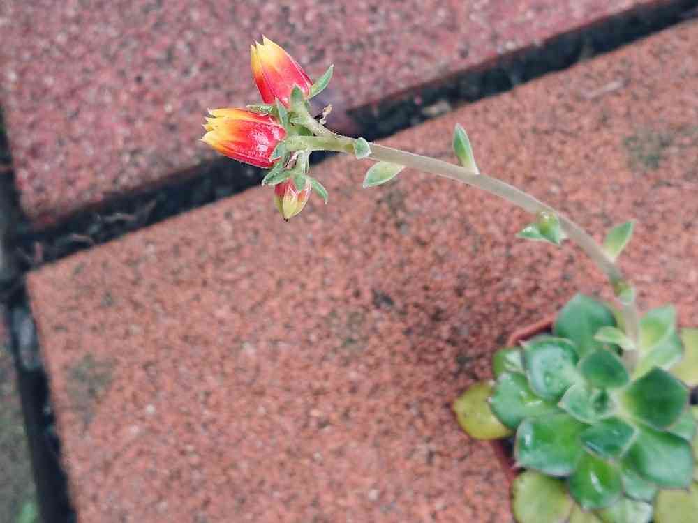 昨日の帰宅後急いで濡らしたくない多肉だけはベランダに引き上げましたが、この子は雨ざらしにした子、今朝ひときわ目を引く色のお花を咲かせていました☺️なんて鮮やかな色のお花♥️癒される‼️✨