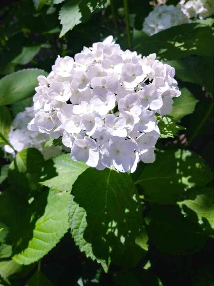 グリーンボールの白でしょうか? 純白の紫陽花ってこのままブーケになりそうで好きです 葉も綺麗🌿