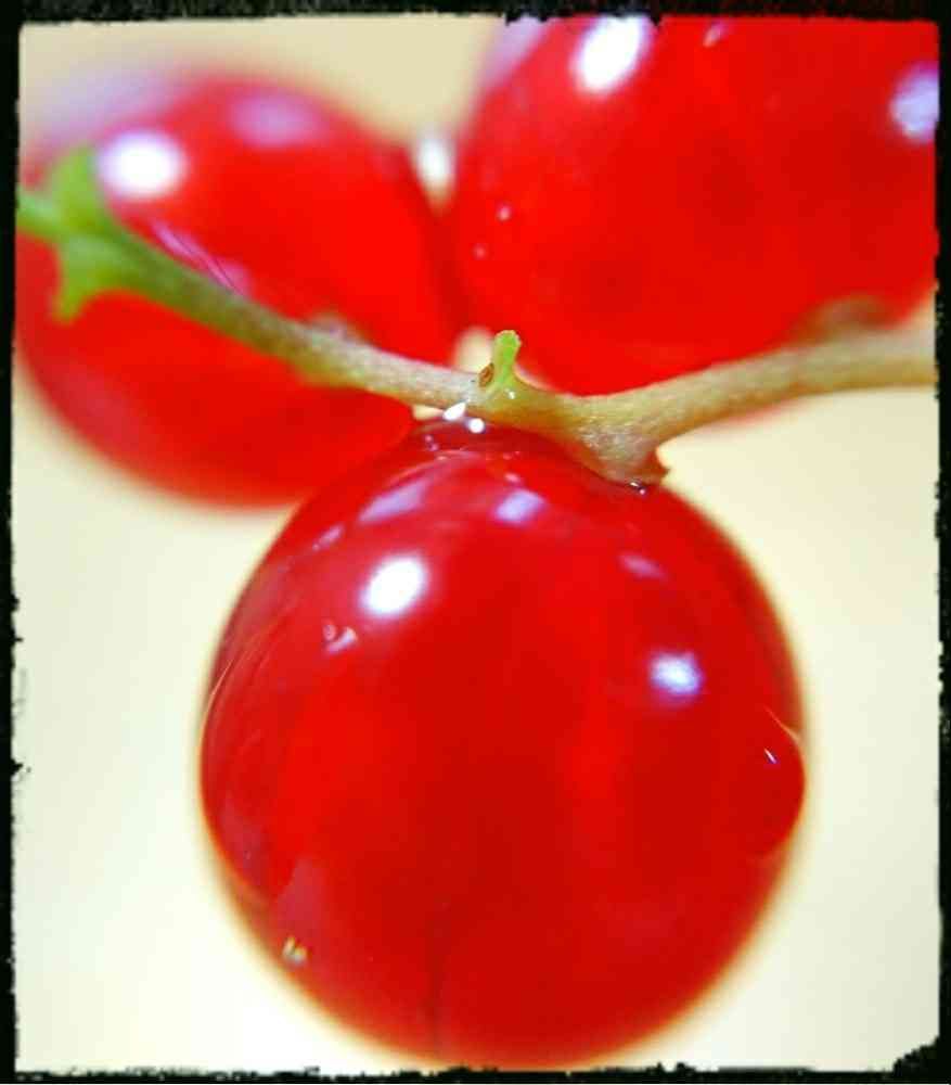 見た目からのイメージと違って、ほとんど甘さは無く、酸っぱい実🔴ですが、甘い物と一緒に食べると素敵なアクセントになりますっ(´ж`)💕