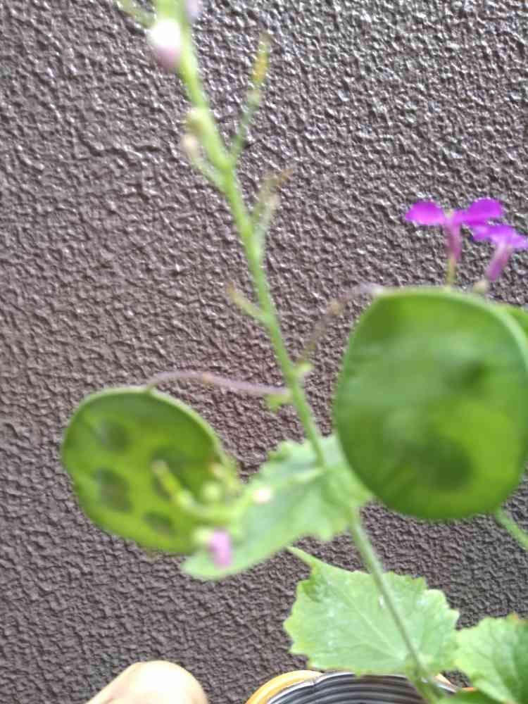 ちゃむさん、ありがとうございます。3月頃、小判草だと言っていただいてましたら、一ヶ月半余りたった頃ふと、見たらなんとかわいい紫💜色の花が咲いているではないですか!花百科事典で調べても分からなくて困っていました。早速、調べてみましたら載っていました。ルナリア、大判草、合田草、銀扇草、金のなる木、らしいです。ホントに本当に有難うね♥