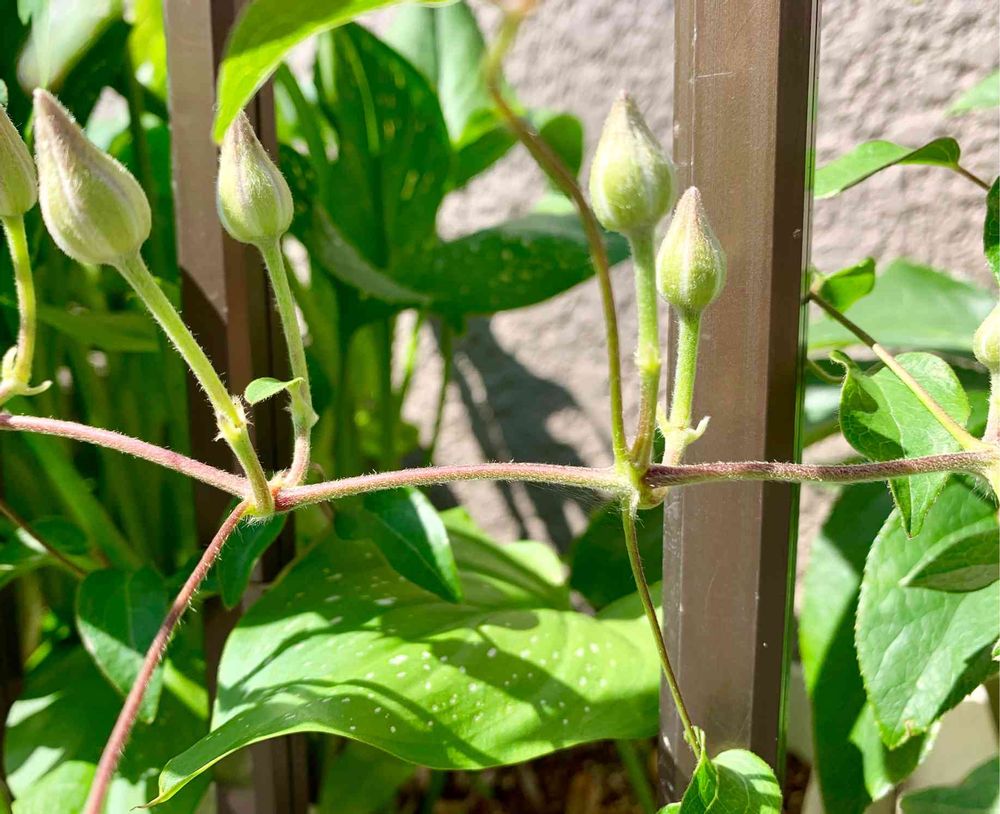 今朝 パトロールをすると 他の鉢のクレマチスがうどん粉病になっているのを発見😨 薬剤散布しました!